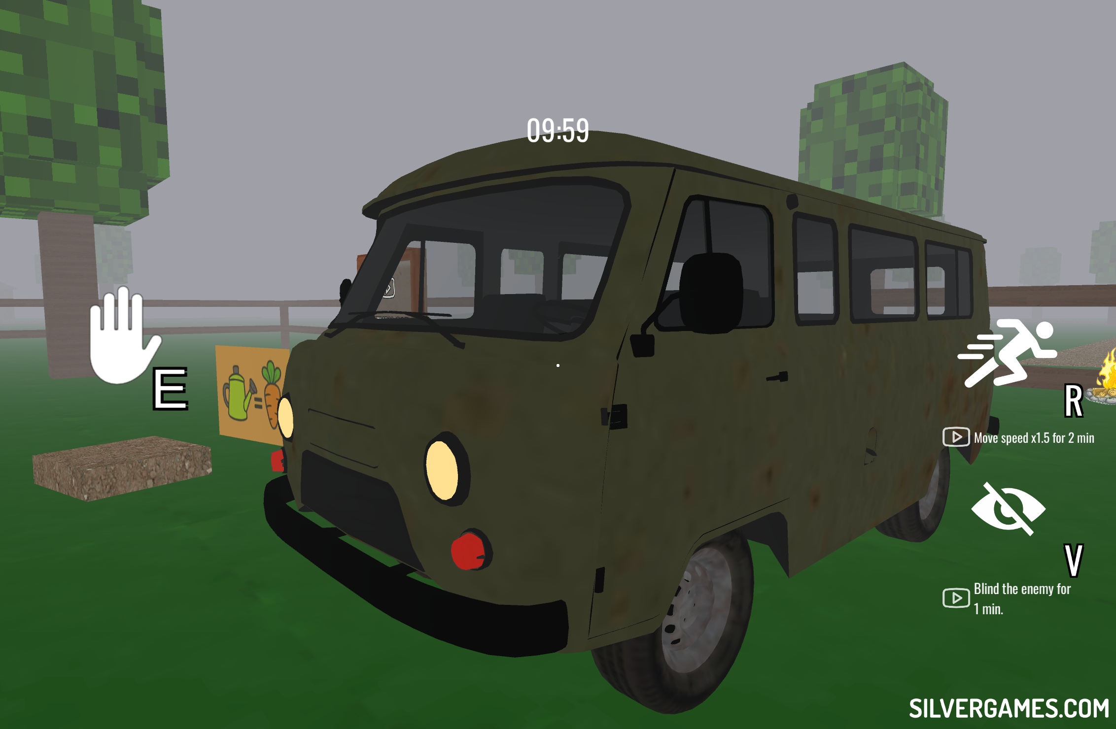 Controls: WASD = Move; E = Interact; C = Crouch; G = Throw