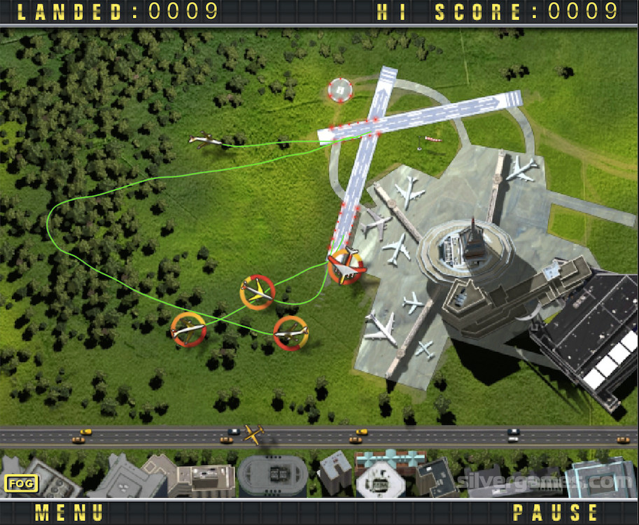Once you successfully land an airplane you will get one point. The number of landed planes is displayed at the upper left corner of the screen. You can see your highscore at the upper right corner. Just land all aircraft without collision on either of the two landing strips. Are you ready for this responsible task? Find out and have fun with Air Traffic Chief 3D online and for free on Silvergames.com!