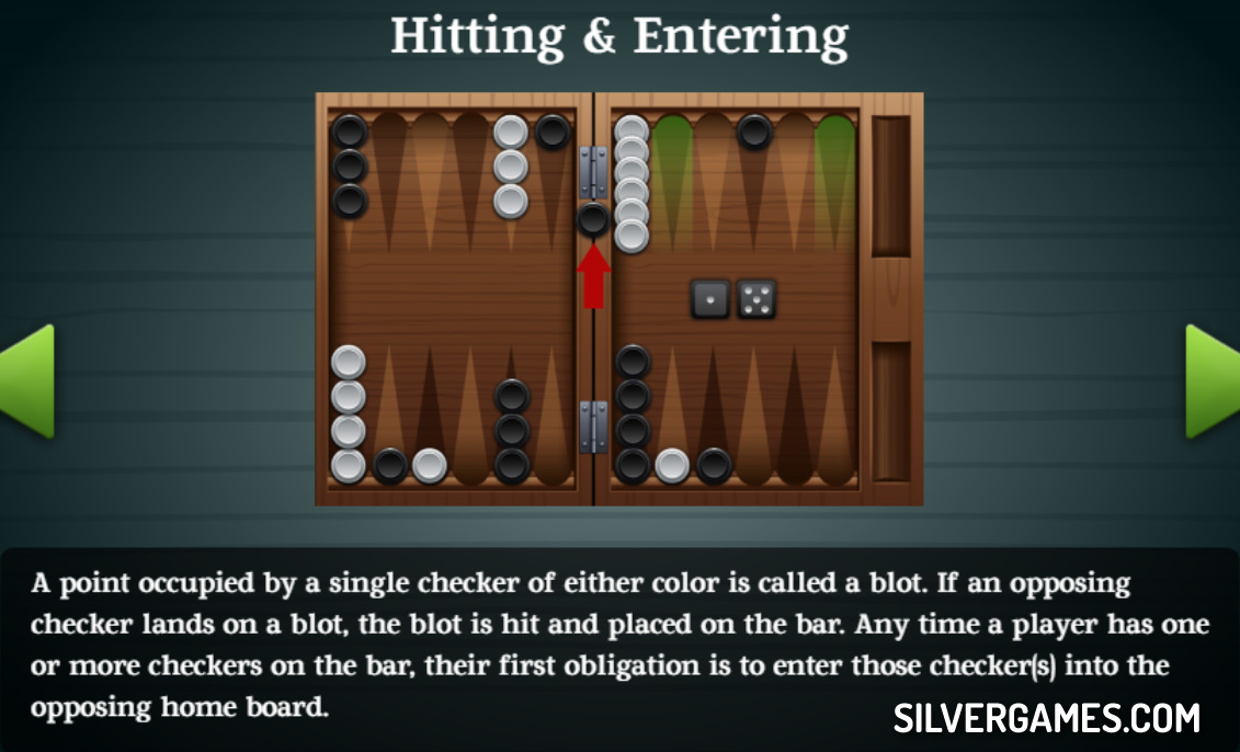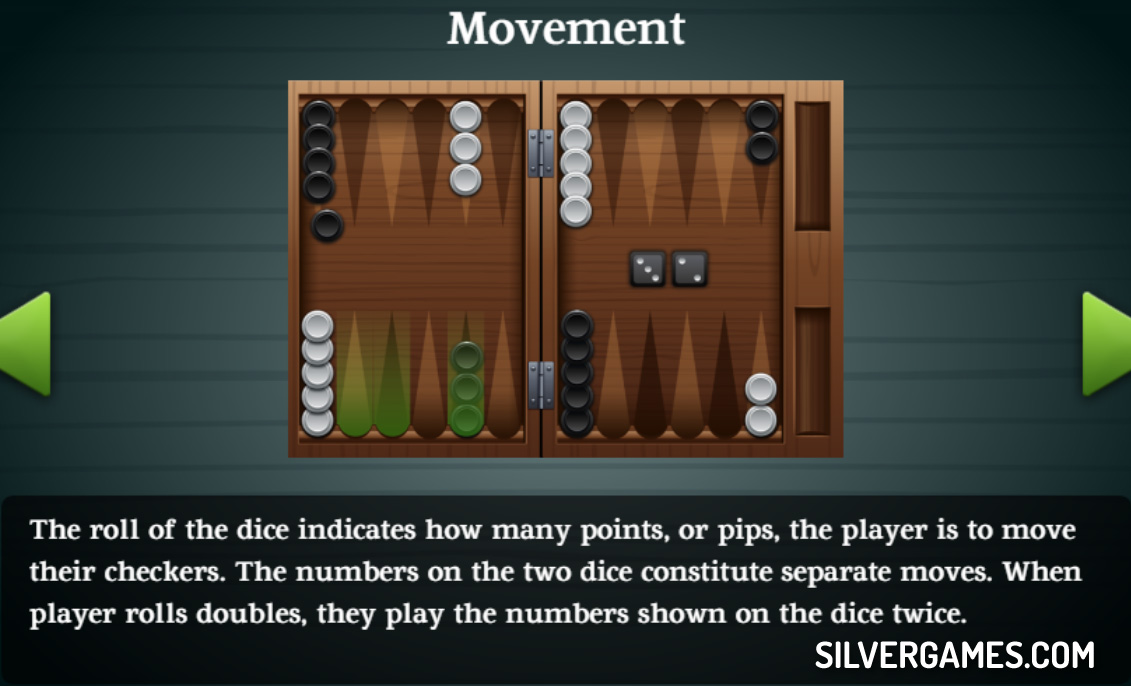 Don't worry if you couldn't understand this short, little rulebook, as the intuitive dynamics of this classic game will help you learn quickly after just a couple of turns, so don't wait any longer and start playing! Just roll the dice, move your tokens to the end and avoid leaving them vulnerable or your opponent will capture them. Have fun playing Backgammon, another great free online game on Silvergames.com!