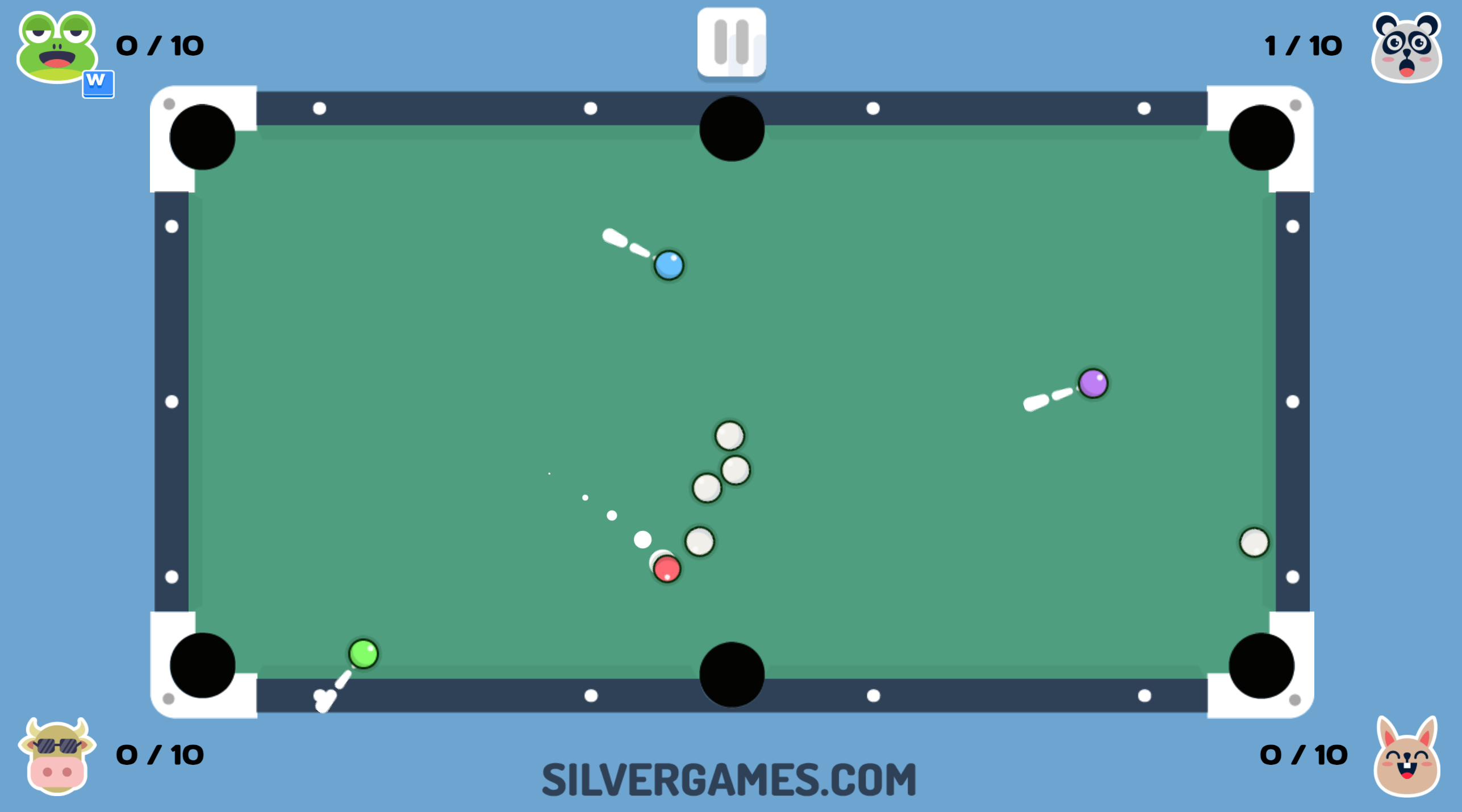 Billiards 2 3 4 Player is an exciting multiplayer pool game that you can play together with your friends. Choose your game mode—play with two, three, or four players—and jump into the action on a virtual pool table. In this free online game on Silvergames.com, you can invite your pals, family members or play against computer.