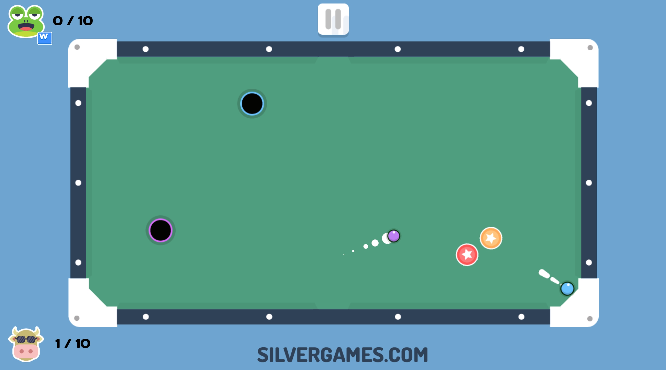 Push the button when the direction of your spinning ball is aimed towards the hole of the same colour to gain points. Hold the button to determine the strength of your shot. The stars scattered on the billiard table are the obstacles, so keep that in mind while shooting. Be careful and don’t push your ball into the enemie’s hole or you will lose points. Line up your shots, sink the balls, and aim for victory as you compete to be the last player standing. Have fun!
