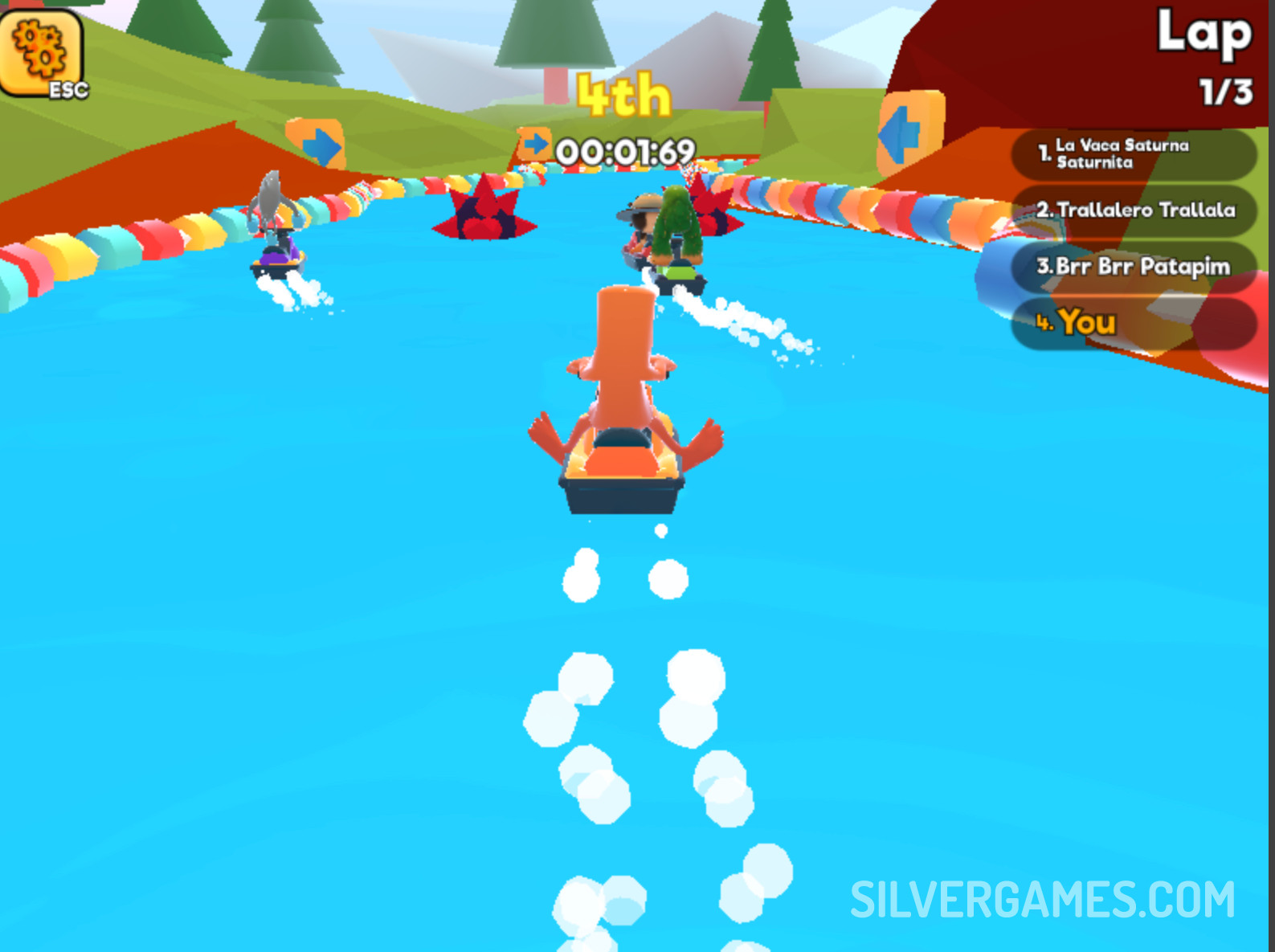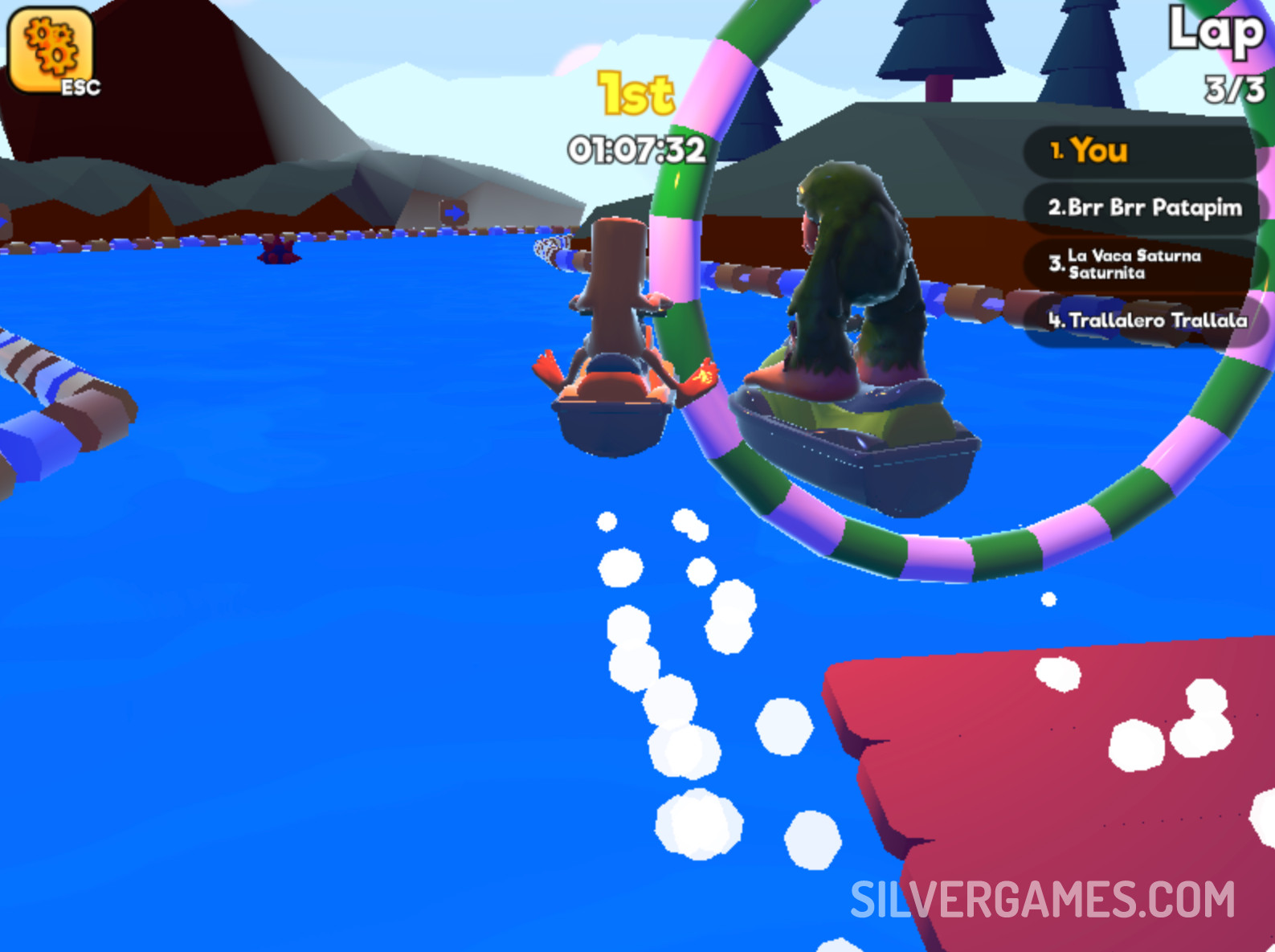 Collect boosters, unlock outrageous skins, and race in wacky arenas that look like they were pulled straight from your For You Page. Whether you’re drifting past Tralalero Tralala on a giant wave or boosting through Cappuccino Assassino’s splash zone, every round is unpredictable, fast, and hilarious. Have fun playing Brainrot Jet Ski Racing online and for free on Silvergames.com!