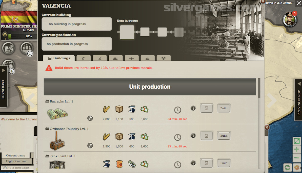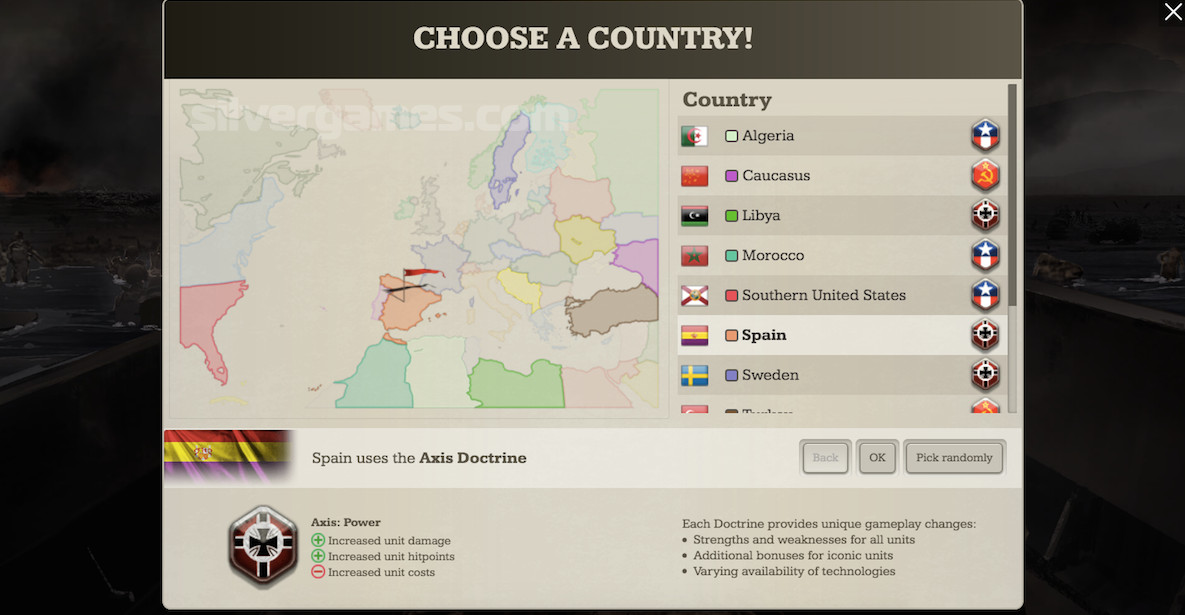 In Call of War, you can choose from various nations and customize your own army, navy, and air force. Plan your moves carefully, deploy your troops strategically, and engage in intense battles on land, sea, and air. Coordinate with your allies and communicate with them in real-time to coordinate attacks and defend against enemy offensives. The game features a detailed map of the world, where you can expand your territories, capture resource-rich regions, and establish production facilities to strengthen your economy. Conduct diplomacy with other players, negotiate treaties, and engage in trade to ensure the prosperity of your nation.