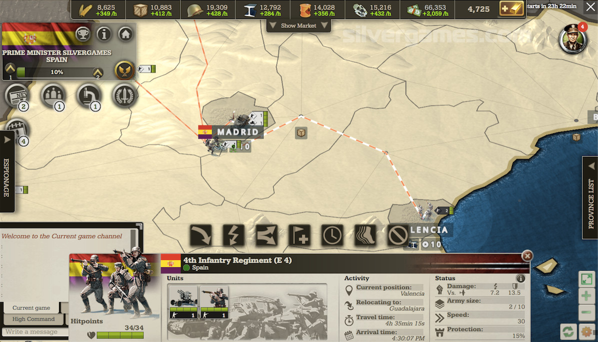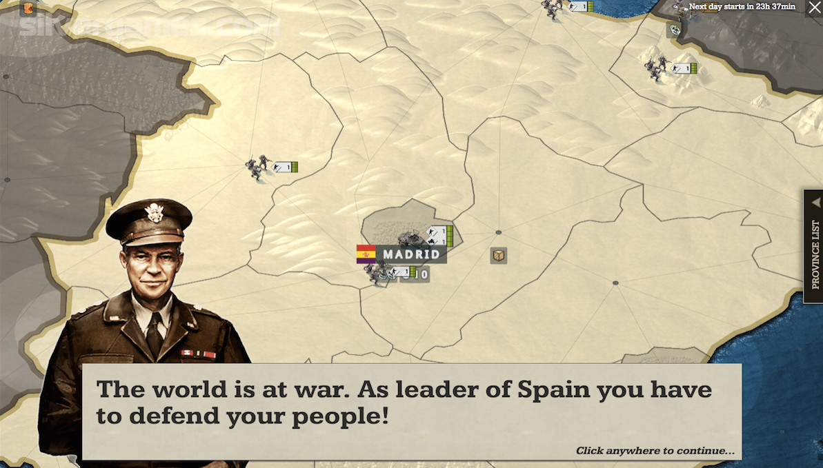 Your country has multiple provinces and your armies are stationed within, so try to involve all of them in order to fight a battle that you can win. This fun game requires quite a lot of strategic thinking to turn on your brain and try to develop the best war strategies. Are you ready to send your troops to war? Find out now and have fun with Call of War, online and for free on Silvergames.com!