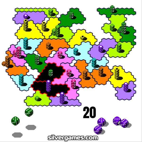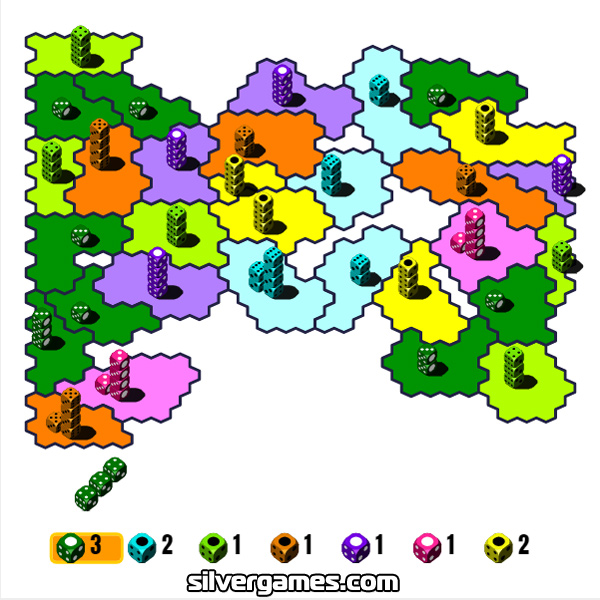If you do, you move into your new territory. If you don't or only draw even you lose your dice, keeping one lonely die to defend your territory. After you are done attacking, you gain dices according to the number of territories you control and can spread them out on any piece of territory you want. DiceWars is not only a game of luck, it also includes strategy and the most important thing is taking new territory. Make sure you don't throw your phone, tablet or screen across the room in anger. Keep rolling, conquer the map and enjoy playing Dicewars, a free online game on Silvergames.com!