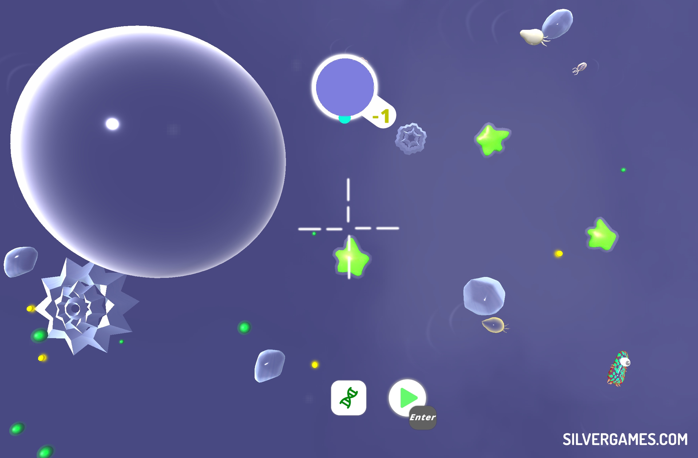 The goal is to eat and grow: collect nutrients and prey on weaker creatures to increase your size and unlock new evolutionary stages. Add various features like spikes, jaws, special colors for photosynthesis and boosters. Each feature changes how your cell behaves and affects the game in its own way. New forms, abilities and strengths allow you to take on bigger challenges and survive in harsher environments. Can you dominate the waters and evolve into the ultimate predator? Have fun!