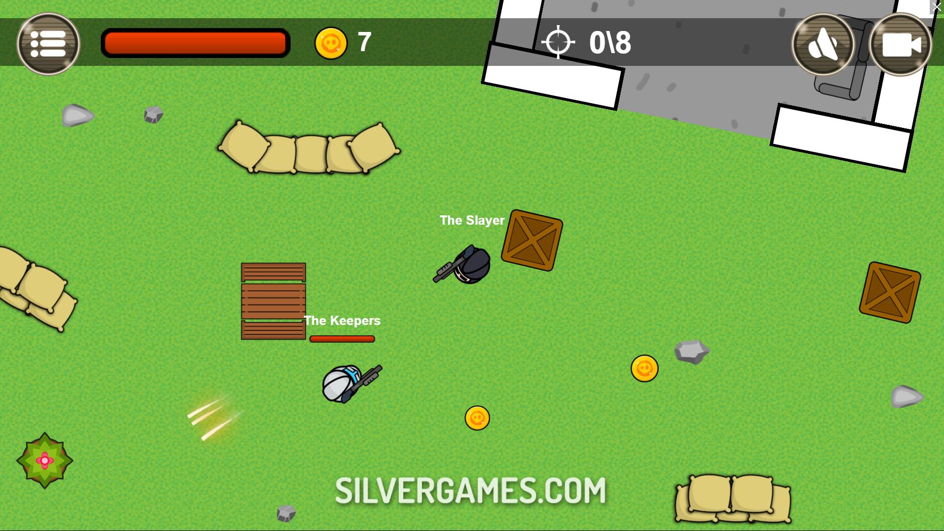 Mini Shooters is a fun IO shooter game that sends you into a battlefield full of enemies to complete missions as a mercenary. You can play this game online for free at Silvergames.com. If you like survival games where you have to kill your enemies in a huge field with a top-down view, this game is ideal for you, as it offers a mission mode and a multiplayer mode.