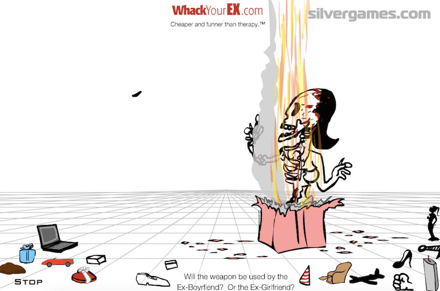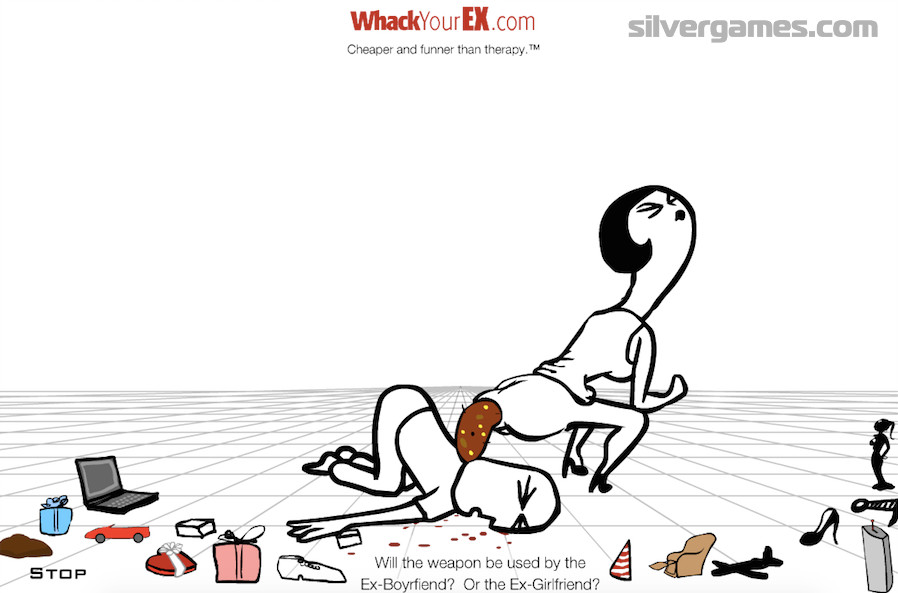 Whack Your Ex is a fun game where you can take revenge on your ex-girlfriend or ex-boyfriend. Romantic relationships rarely end with a little bit of the ultraviolence. Whack Your Ex is here to remedy that. Feel like commemorating your break-up with some cartoonish brutality and over-the-top savagery? Pick objects and see how and who gets to whack whom in gruesome and violent ways. It's cheaper than seeing a therapist or processing your feelings, and it's also infinetely less useful.